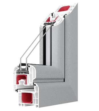 - 1,5 mm oceľová výstuž rámu a krídla (2 mm v prípade krídla balkónové dvere) v tvare "C-profilu"