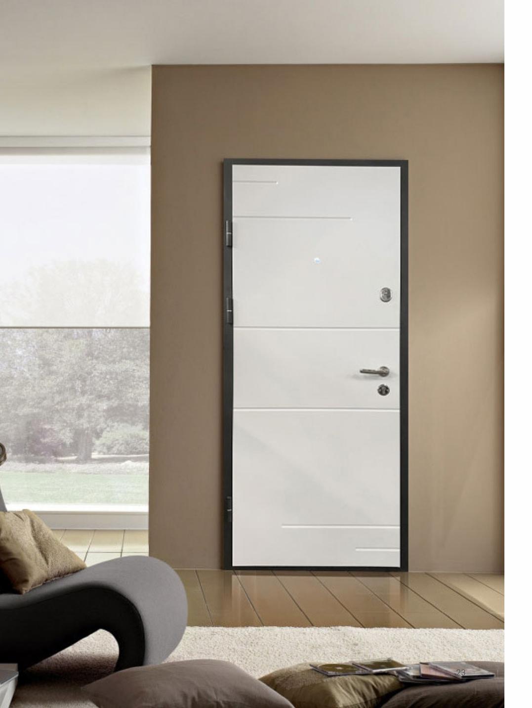 Vchodové bytové dvere s cylindrickým hlavným zámkom a pákovým prídavným zámkom.